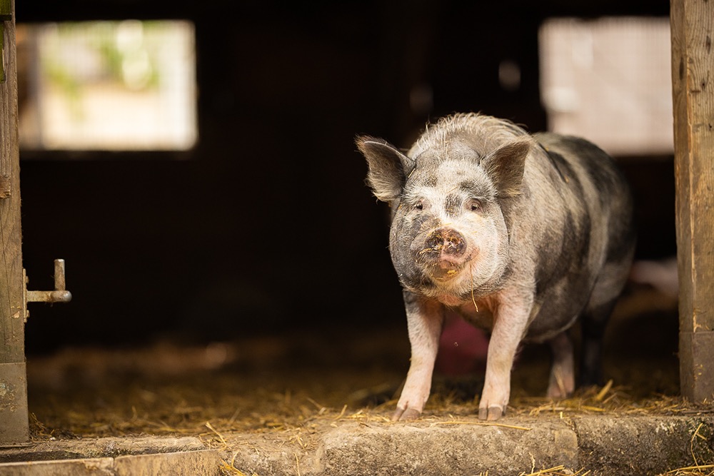 Rosie was bought as a piglet by a livery yard with the intention of becoming a hog roast. When the ladies got to know her cheeky naughty personality they could not go through with sending her to slaughter. Rosie now spends her days breaking fences and stealing bags of straw of the humans before they have chance to lay it!
