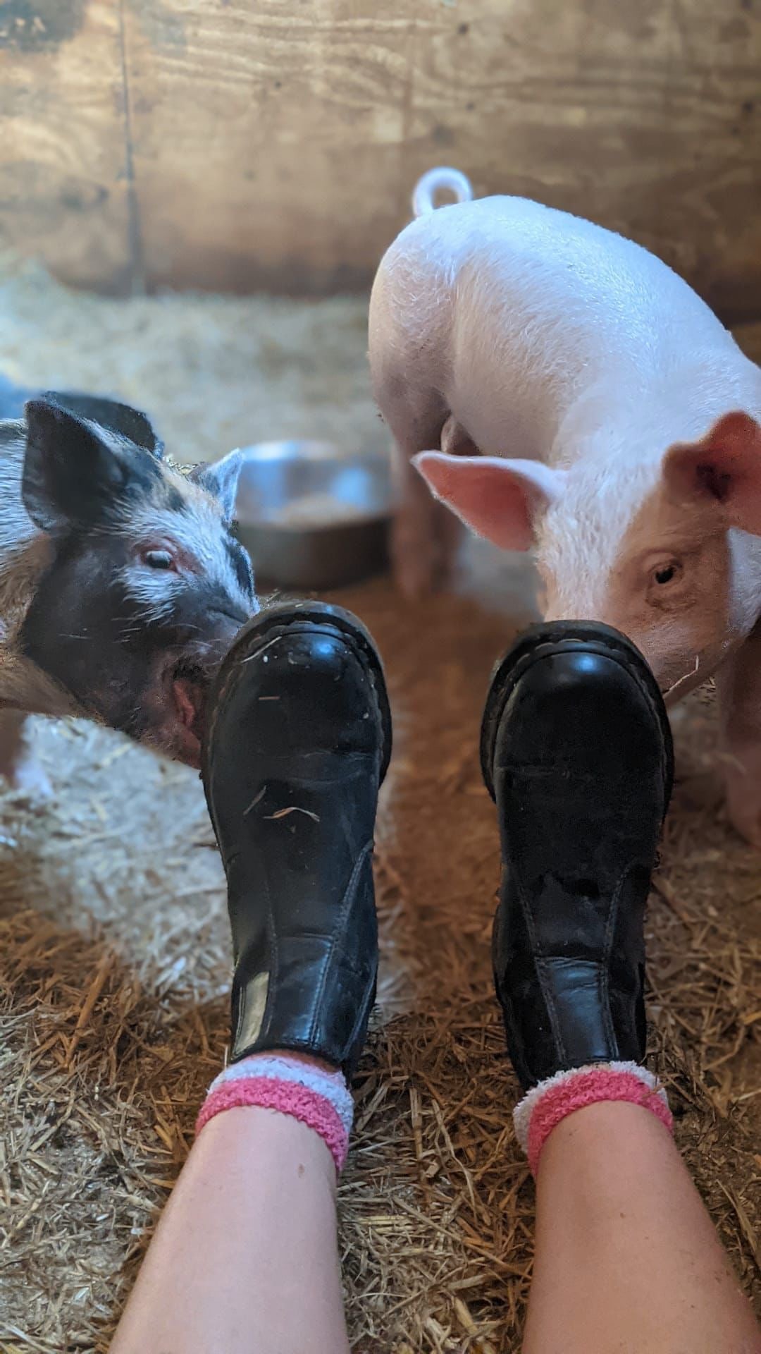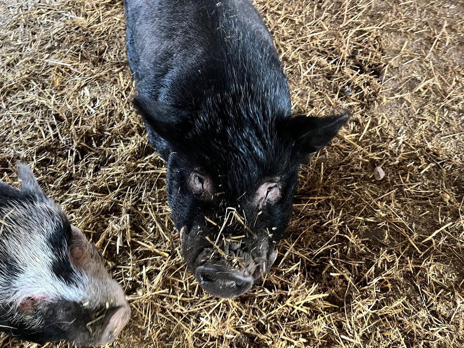 Rick and Morty are tamworth x gloucester old spots. They were free to good home or sausuages as the breeder had no use for them anymore. They are not the most affectionate boys but have wonderful naughty personalities.